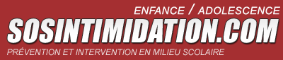 L'intimidation en milieu scolaire est un problème très préoccupant qui peut avoir des répercussions majeures sur un élève et sa famille. Les élèves intimidés présentent des signes d'angoisse sociale : ils se sentent isolés et rejetés de leurs pairs. Ils développent des plaintes somatiques, ils peuvent cumuler des échecs défavorables à leur persévérance scolaire et ils développent des comportements réactifs ou sous-réactifs. Nous vous proposons sur sosintimidation.com un programme de prévention, de dépistage et de sensibilisation sur les différentes caractéristiques qui définissent l'intimidation en milieu scolaire.
